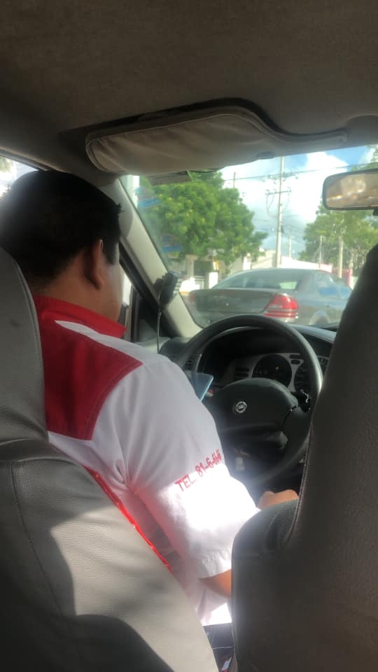 Un taxista perteneciente a la empresa Taxi Águilas Campeche fue denunciado en redes sociales por no respetar las medidas sanitarias establecidas para el servicio de transporte público y usar su teléfono celular mientras conducía.