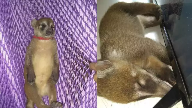 La mujer indicó que el tejón se extravió en la entrada de Sinaí, en la colonia Samulá de Campeche, por lo que se decidió a publicar una fotografía en la que se muestra al animal con un collar rojo durmiendo en una hamaca morada.
