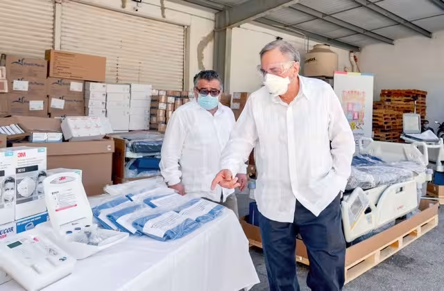 Además, para la protección de los trabajadores médicos proporcionó seis mil cubrebocas N95, 10 mil overoles y cinco mil batas desechables.