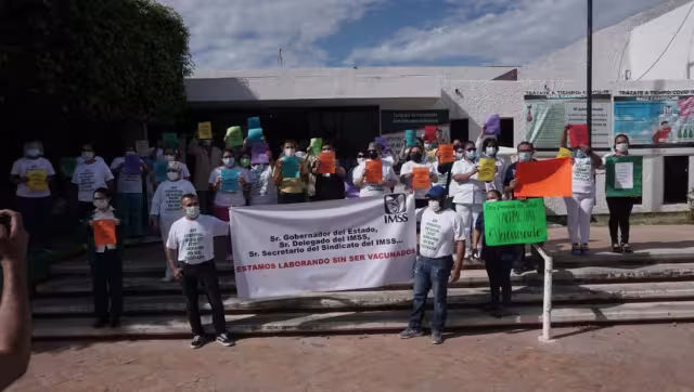 Personal del IMSS exige aplicación de vacunas anticovid en Campeche