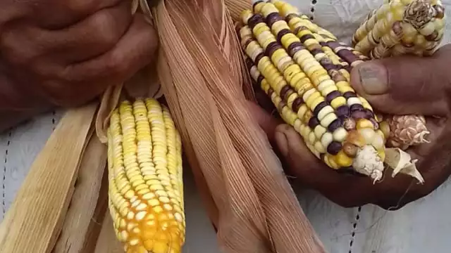 El labriego aclaró que esta variedad modificada ya se produce en la tierra chenera, “pero a las autoridades no les conviene darlo a saber”, indicó a este medio después de realizar varios desgranes de mazorcas amarillas y moradas.
