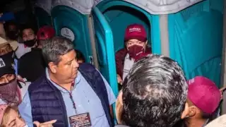 Al estilo de Peña Nieto, Mario Delgado se esconde en un baño para huir de protestas