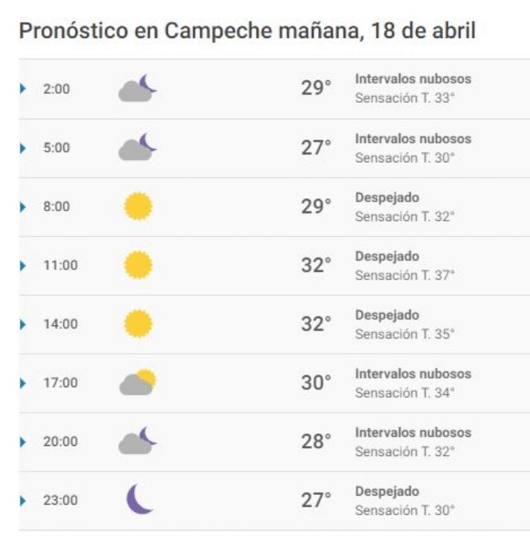 En Campeche, se esperan condiciones calurosas para este domingo pues las temperaturas oscilarán entre 34 y 26 grados Celsius, según el Servicio Meteorológico Nacional (SMN).