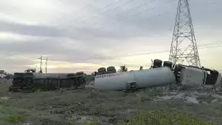 Tráiler de doble remolque vuelca en Ciudad del Carmen