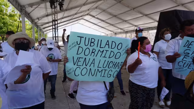 Jubilados del IMSS se manifiestan en Campeche