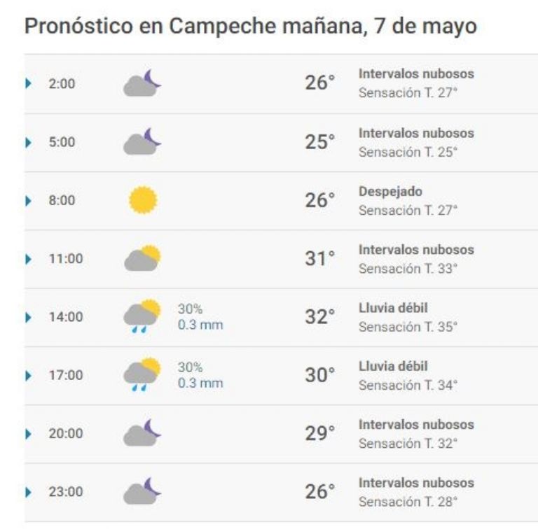 En Campeche, se esperan condiciones calurosas para este viernes pues las temperaturas oscilarán entre 33 y 24 grados Celsius, según el Servicio Meteorológico Nacional (SMN).