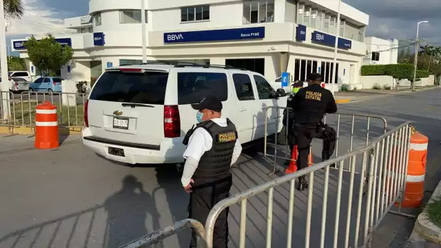 Alrededor de 70 elementos de la Policía Estatal despliegan un operativo de vigilancia alrededor del Centro de Convenciones Campeche XXI, donde se realiza el primer debate entre candidatos a la gubernatura del Estado.