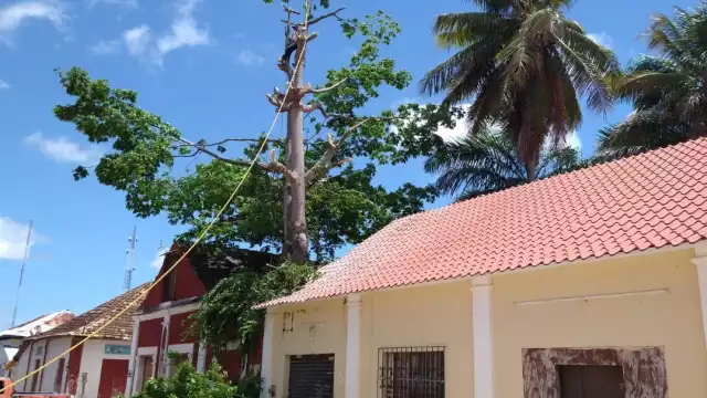 Como prevención y evitar que parte de la historia de Palizada se pueda ver afectada como es la única casa de teja de pizarra que queda en el centro histórico, elementos de Protección Civil llevaron a efecto la poda total y en los próximos días el retiro de un árbol de ceibo y que forma parte del paisaje urbano, pero  que ya resulta peligroso debido a que es una madera quebradiza y con los fuertes vientos que se dejan sentir en esta temporada de lluvias podría venirse abajo y causar daños mayores, además que ya levanto parte de la banqueta con sus raíces, expreso el titular de Protección Civil municipal, Emiliano Ballina Alejo.