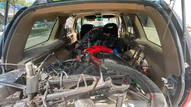 En el sitio se revisó el interior de la camioneta localizando motos desvalijadas siendo un total de cuatro marcos, las cuales los justificaron que tenían los papeles pero al revisar los números de serie se confirmó que todas las motos contaban con reporte de Robo.