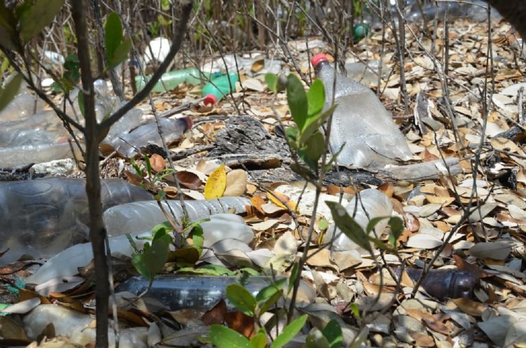 El plástico forma parte del panorama cotidiano que se ve debajo del agua y entre los manglares; esos desechos son el resultado del uso indiscriminado por parte de los seres humanos, quienes tiran irresponsablemente los envases a la orilla de la carretera y mares.