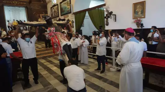 Pese a la pandemia de COVID-19, la tradición de visitar al Cristo Negro de San Román, en Campeche, continúa vigente, tras ser bajado de su altar el pasado 15 de agosto para exponerlo cerca de los fieles el Santuario ha recibido alrededor de 500 personas, dio a conocer, el rector, Juan Alberto Arcos Arana.