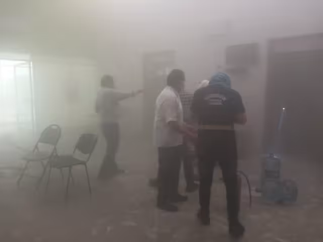 El corto circuito generó una gran columna de humo que invadió rápidamente toda la zona de espera y el cable que se quemó, cayó sobre unos líquidos que estaban en el consultorio que se incendió, pero fue apagado rápidamente por los participantes que se coordinaron de tal forma que evitaron que las cosas pasaran a mayores y quedara en un conato de incendio.