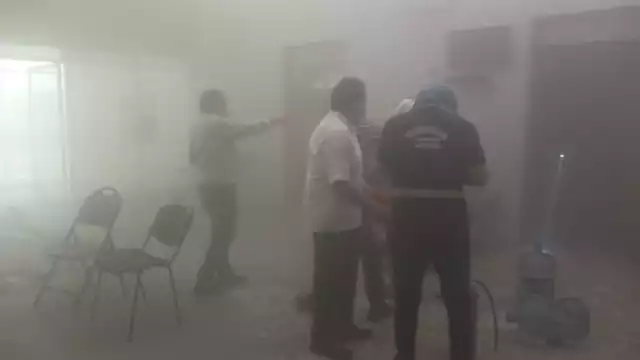 El corto circuito generó una gran columna de humo que invadió rápidamente toda la zona de espera y el cable que se quemó, cayó sobre unos líquidos que estaban en el consultorio que se incendió, pero fue apagado rápidamente por los participantes que se coordinaron de tal forma que evitaron que las cosas pasaran a mayores y quedara en un conato de incendio.