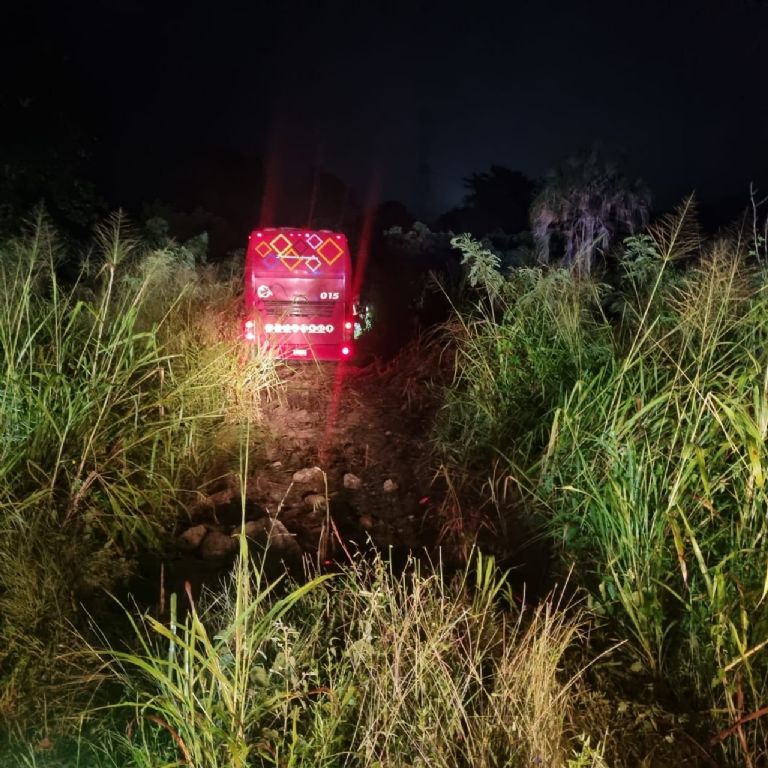 El camionero fue perseguido por varias unidades de la Guardia Nacional, y para evitar que sea detenido el conductor introdujo el autobús a una brecha entre la maleza y se bajó.