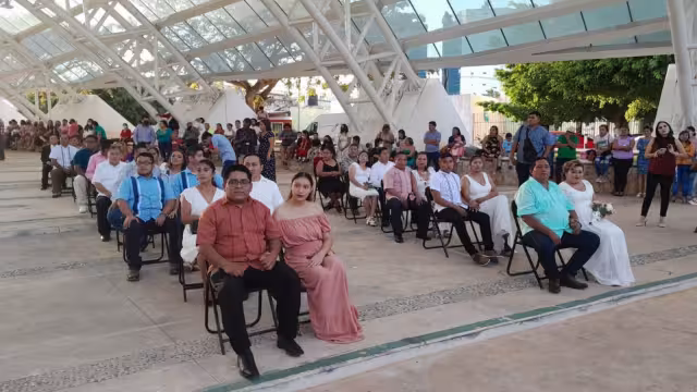 65 parejas, entre estas una de la comunidad LGBT y otra de sordomudos, unieron sus vidas en matrimonio en San Francisco de Campeche.