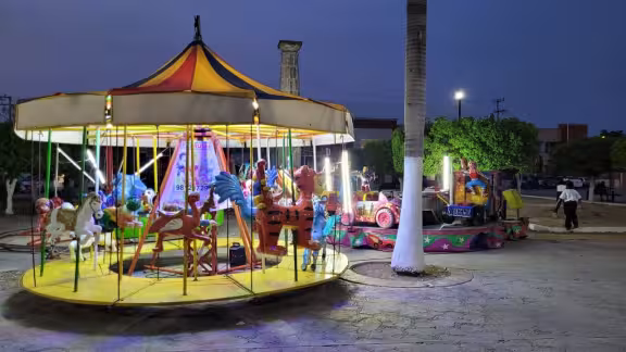 Desde el tradicional carrusel, hasta carritos, helicópteros y brincolines se ubican en la plaza "Niños Héroes de Chapultepec". En tanto que en los alrededores del lugar también se cuenta con diveros puestos de alimentos y golosinas ofrecidas a las familias que arriban a la zona.