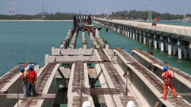 “La construcción del tramo elevado del acueducto Chicbul-Carmen, que sustituirá el tramo marino del puente está por iniciar; es un tramo que se va a construir sobre algunas calles de Isla Aguada que va del cárcamo de rebombeo hasta la parte que sube el puente; es la parte submarina que cruzará el puente y de ahí se vuelve a conectar al acueducto en Carmen”, puntualizó.