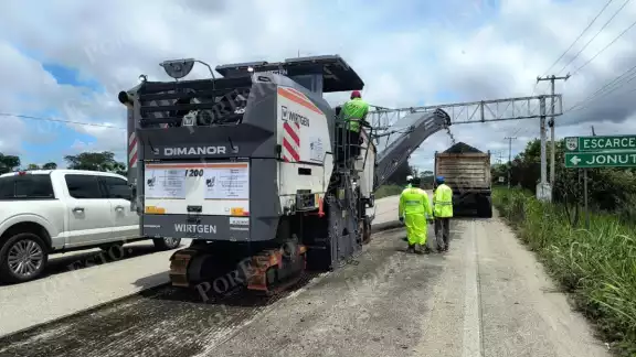 Además, con maquinaria especializada, la SICT realiza acciones de pavimentación en casi 52 kilómetros del tramo de la carretera Villahermosa–Escárcega. Para esta obra se destinan 81 millones 700 mil pesos, con un avance del 34% en la pavimentación de los 51.7 kilómetros.