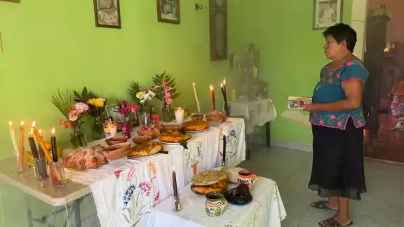 Indicó que mientras ella pueda seguirá conservando esta tradición, y para ello elaboró con apoyo de su esposo e hijos varios pibipollos, montó un altar y una rezadora despidió a sus fieles difuntos.
