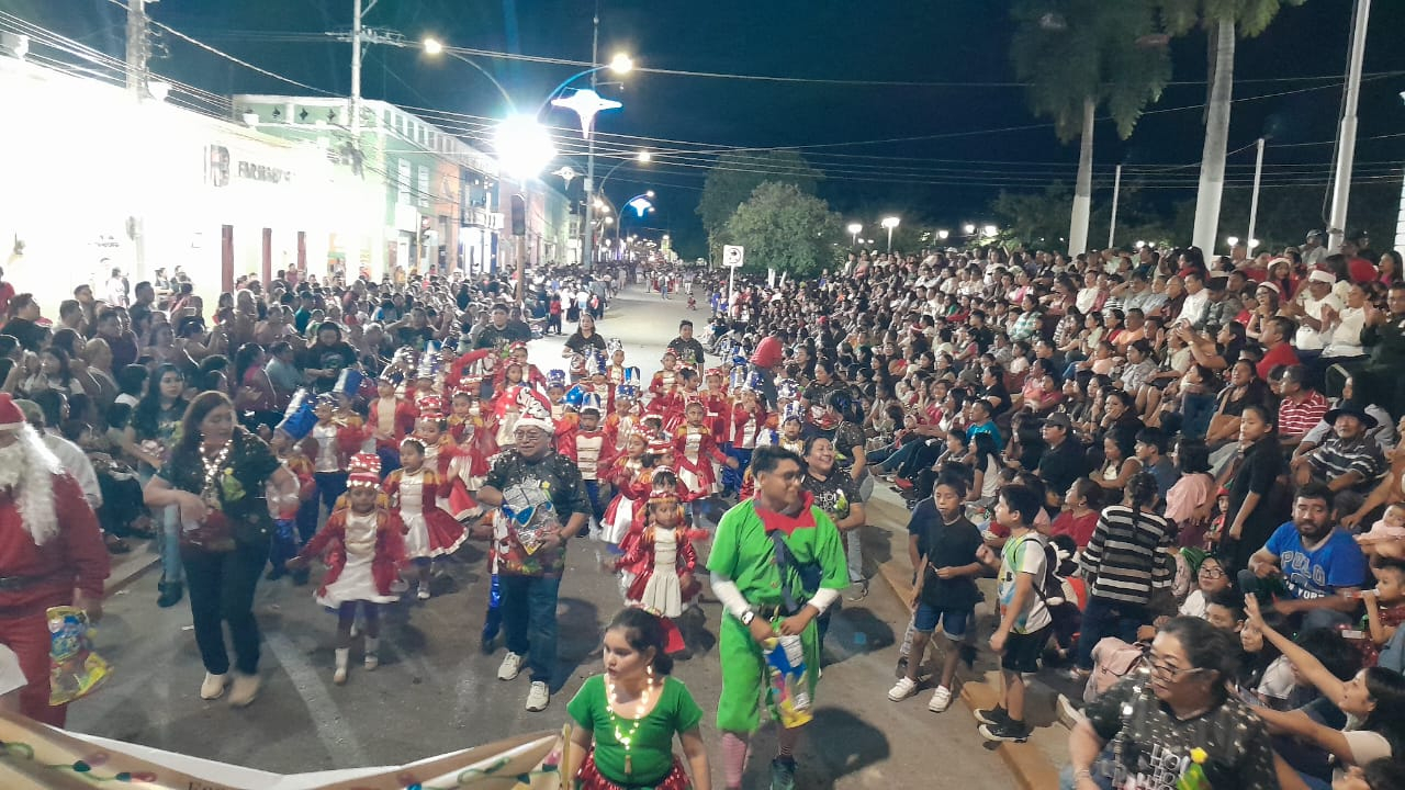 El desfile navideño estuvo completamente abarrotado por los calkiniences, quienes desde muy temprano salieron para ocupar el mejor lugar y poder disfrutar del evento donde participaron más de 2 mil 500 personas de diferentes instituciones: educación inicial, primarias y academias de danza, que salieron a las calles para llenarlas del espíritu navideño.