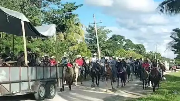 La cabalgata inició alrededor del mediodía, cuando decenas de jinetes a caballo participaron en el recorrido por varias calles del poblado hasta llegar a la cancha techada, en donde se realizó un convivio con todos los participantes.