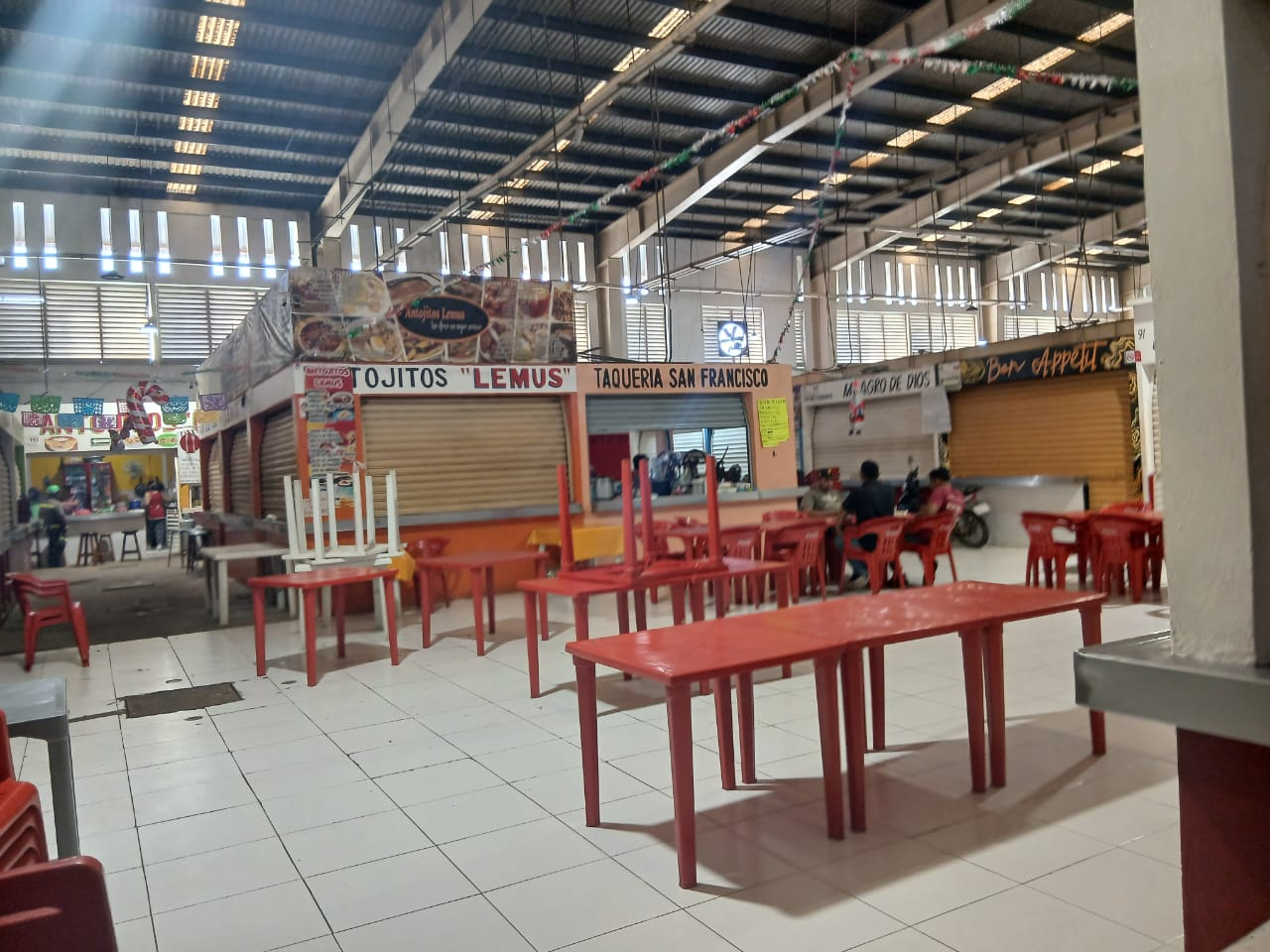 En el interior del mercado público municipal José del Carmen González Salazar, apenas había algunos comerciantes de frutas, legumbres y carnes rojas, pero sin clientes, ya que muchos prefirieron mantener el día cerrado.