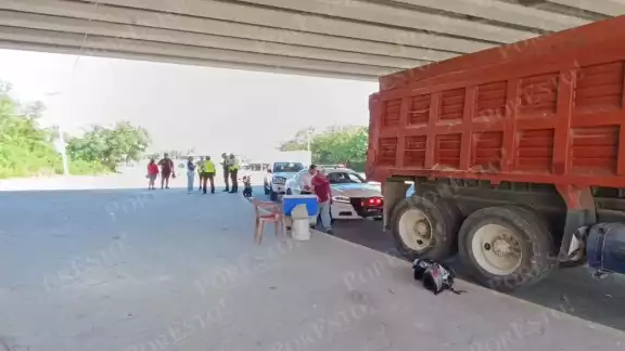 El hecho ocurrió cuando una pareja viajaba en motocicleta sobre el periférico Pablo García I. Montilla, pero al estar entre el cruce al acceso al poblado de Chiná, su paso fue interrumpido por un volquete que salió de la avenida Héroe de Nacozari e intentó incorporarse al flujo de la zona federal sin respetar su alto.