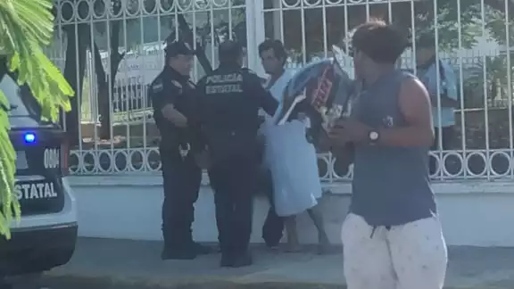 Ante el desconcierto, los presentes lo retuvieron y solicitaron la presencia del personal del nosocomio “Dr. Javier Buenfil Osorio”. Un ciudadano reportó al 911, por lo que una patrulla de la Policía Estatal de Caminos acudió al sitio.