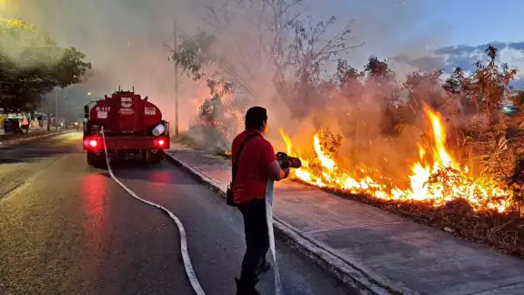 Quema de pirotecnia provoca conato de incendio y movilización en Mediterráneo, Ciudad del Carmen