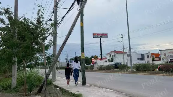 Por separado, Lorena Cahuich señaló que la estructura en cuestión desde el año pasado permanece inclinada hacia el costado izquierdo de la avenida, sostenida por cables de baja tensión y de telefonía. “El poste inclinado está a punto de caer, y lo peor del asunto es que nadie se ha dignado a venir a retirarlo. Creo que están esperando a que caiga para que entonces hagan algo”, añadió.