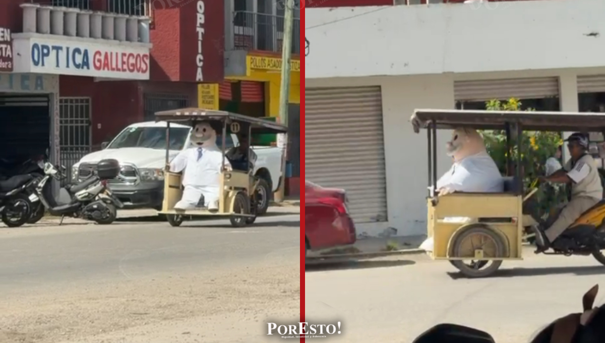 El icónico personaje fue visto desplazándose tranquilamente en este medio de transporte tradicional, provocando sonrisas, saludos y teléfonos en alto de quienes se cruzaban en su camino. La imagen, tan sencilla como peculiar, se convirtió en un momento viral que puso en el centro de la conversación a Escárcega y a una de sus formas más características de movilidad.
