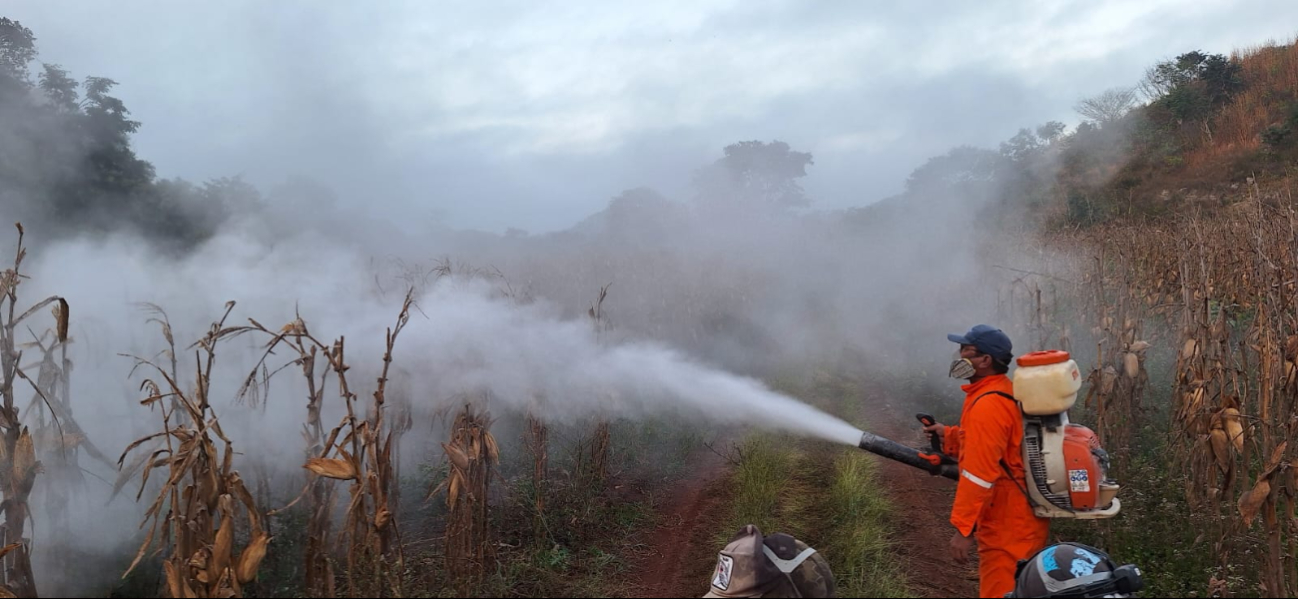 Al poco tiempo, los brigadistas verificaron que en el lugar no haya apiarios, ganado o casas cercanas ya que los químicos son agresivos y su peligrosidad amerita vigilancia para que no cause daños en montes, y mucho menos a las propiedades de cada ejido.