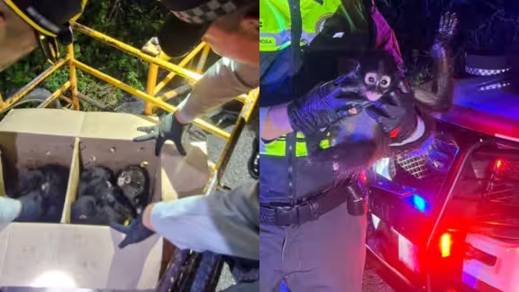 Mediante redes sociales, la Guardia Nacional, informó sobre el rescate de nueve ejemplares de mono araña (Ateles geoffroyi), que eran trasladados en un triciclo, al interior de una caja de cartón en condiciones de hacinamiento, con intención de ser comercializados.