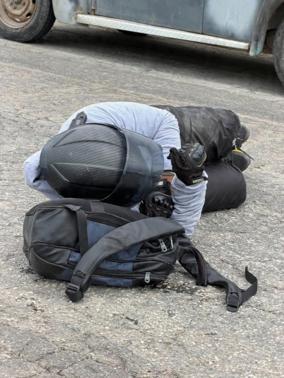 Al lugar acudieron elementos de la Guardia Nacional (GN), quienes se encargaron de abanderar la zona para alertar a los conductores y evitar otro percance. En el sitio localizaron al motociclista tendido sobre el pavimento, quien refirió haber derrapado al intentar esquivar un bache; tras el impacto, su unidad quedó sobre el acotamiento.