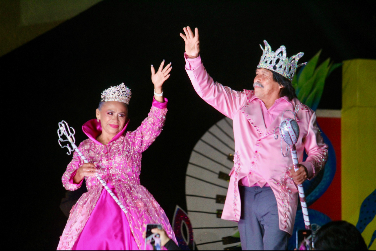 Coronan a los Reyes Adultos Mayores, Noemí I y Canito I en el marco de los festejos del carnaval de Champotón 2026, desde la plaza Ángel Castillo Lanz de esta emblemática ciudad.