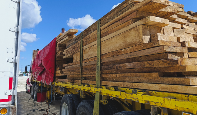 La Profepa aseguró un tractocamión con 28.273 metros cúbicos de madera de pucté en Escárcega, Campeche, tras detectar diferencias en el volumen declarado y anomalías en la documentación forestal presentada por el transportista.