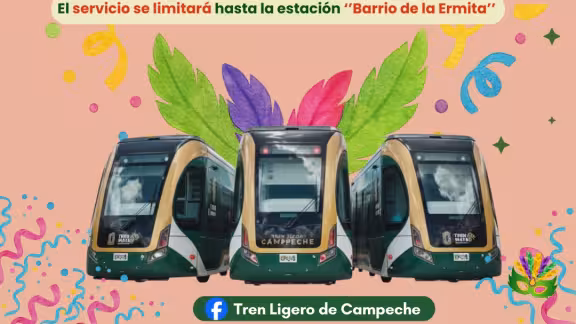 Con motivo de las actividades del Carnaval de Campeche 2026, el servicio del Tren Ligero tendrá modificaciones en sus rutas y horarios los días 13, 14 y 15 de febrero, con el objetivo de facilitar la movilidad y garantizar la seguridad de los asistentes.