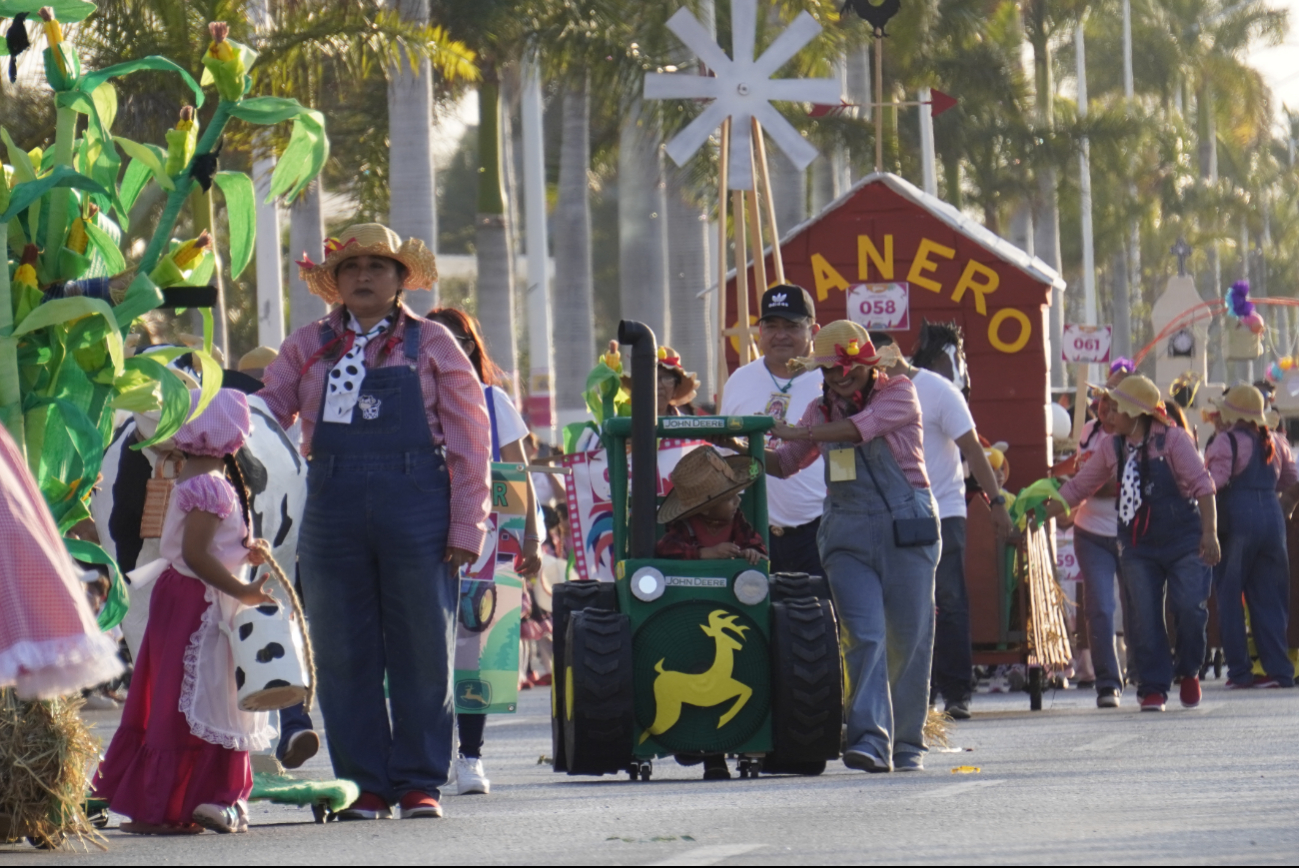 Bajo el tema “Cuando el Sol Toca el Mar: Tesoros Marinos de Campeche”, el Corso Infantil rindió homenaje al atardecer campechano y a la riqueza de la vida marina del Golfo de México. La propuesta fusionó naturaleza, imaginación y tradición en cada comparsa, con mensajes que exaltaron el entorno costero y la cultura local.