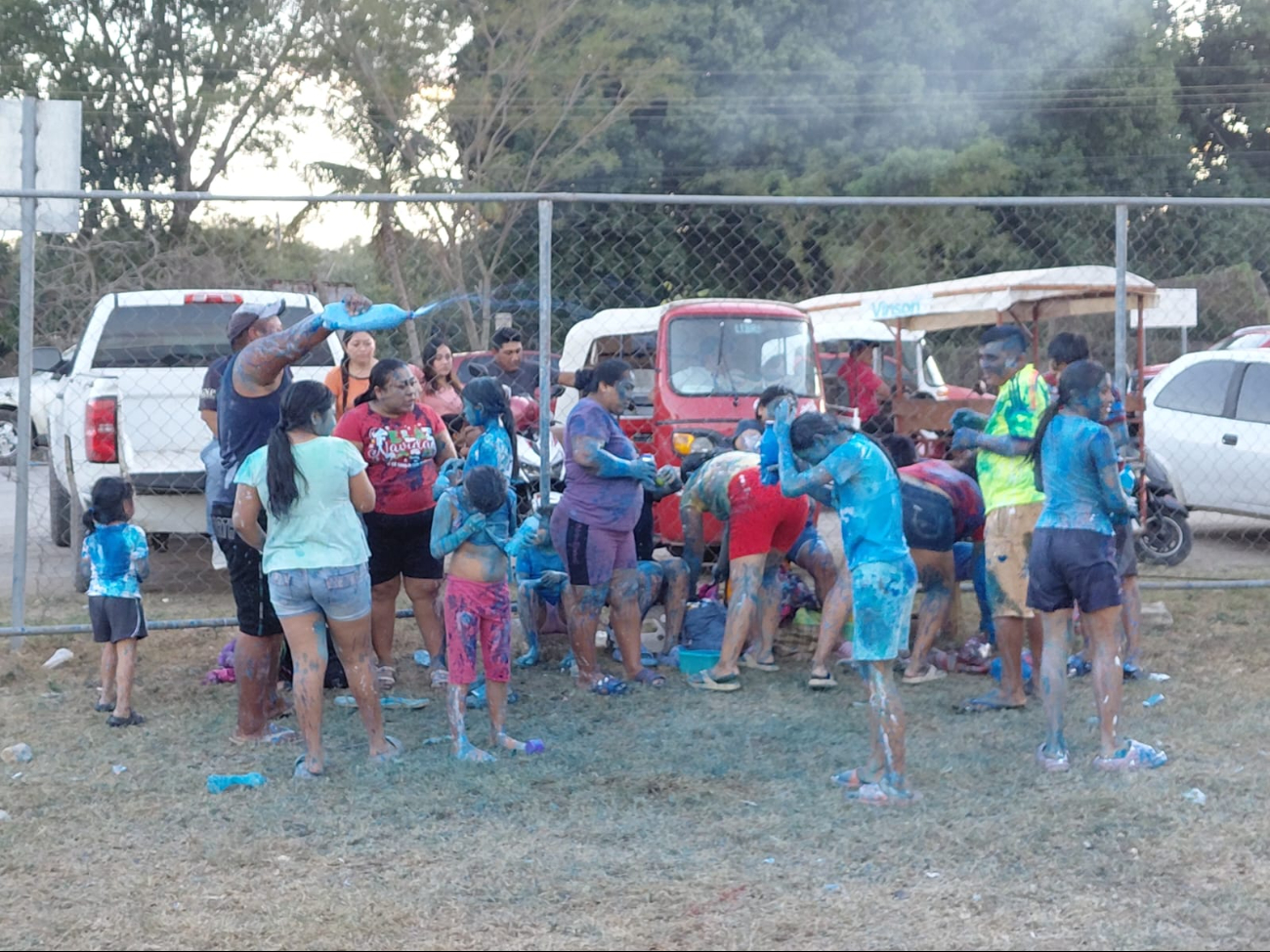 Y como es costumbre en esa colonia, vecinos y familias enteras se reunieron para ser parte de la fiesta al dios momo, y usaron pintura de agua.