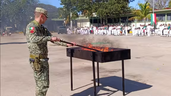 Con voz fuerte y dulce de menores de 11 diferentes escuelas de nivel básico de la capital campechana, en el Décimo Batallón de la Secretaría de la Defensa Nacional (Defensa) se realizó la ceremonia de "Incineración de Banderas" y entrega de nuevos Lábaros Patrios a Escoltas Escolares.