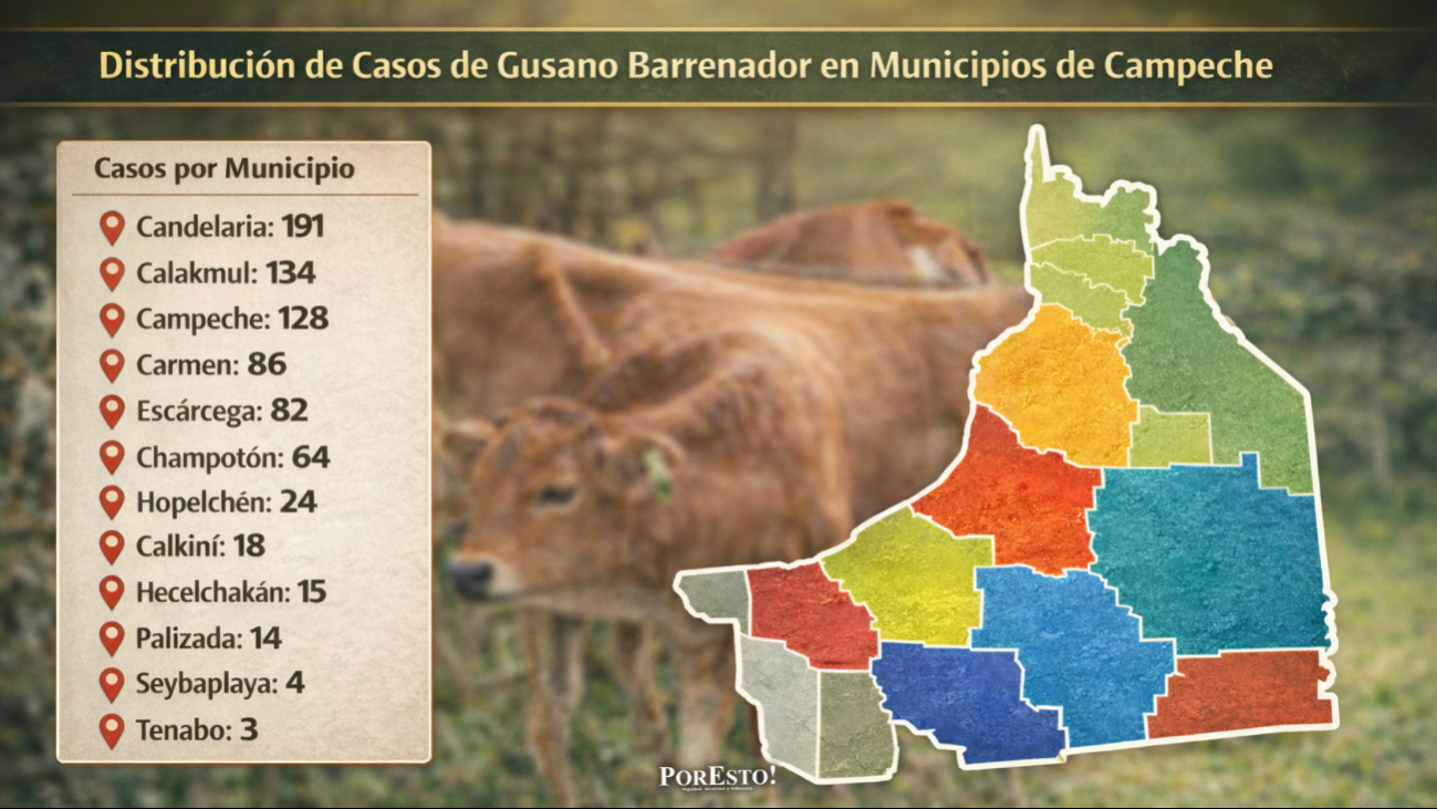Estos datos reflejan que el llamado gusano barrenador continúa representando un riesgo para la ganadería, mascotas y fauna local, por lo que autoridades y productores deben reforzar las medidas de control sanitario para evitar una mayor propagación.