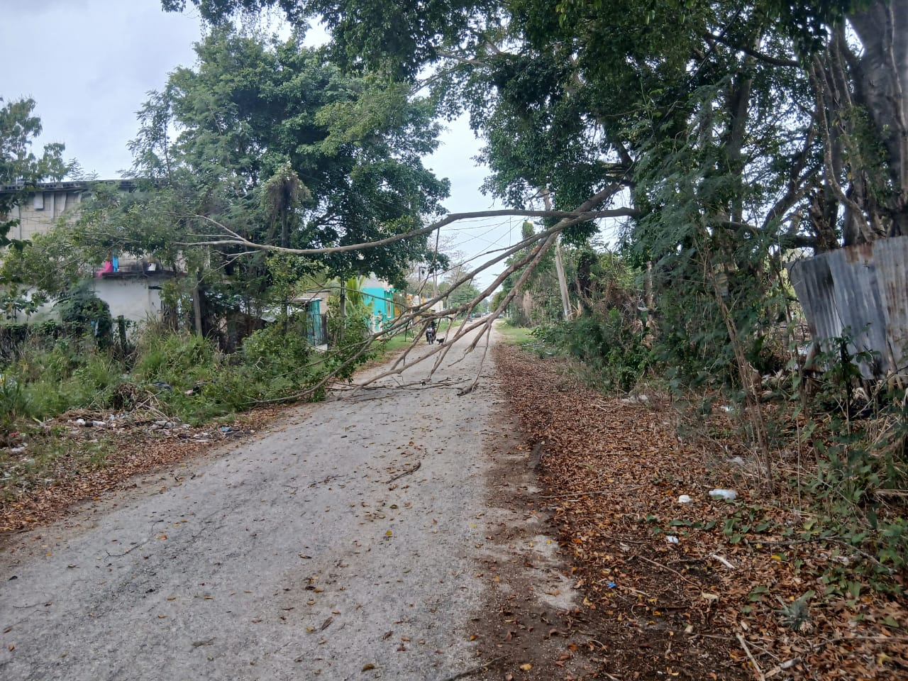 Frente frío provoca caída de árbol y riesgo en calle 34 de Escárcega