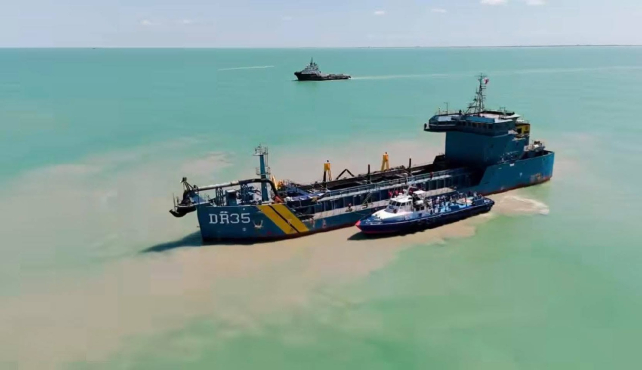 En el Carmen, la obra contempla 4 pilares de atención, los primeros tres a cargo de la Federación. Uno de ellos es el dragado del canal de navegación a 5 metros, mantenimiento en el que opera la draga de la Secretaría de Marina, considerada una de las más grandes del país.