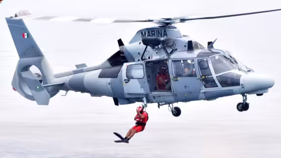 La unidad aérea despegó a las 12:25 horas, con dos observadores, un elemento de sanidad y un nadador de rescate a bordo, con el objetivo de ampliar la cobertura y fortalecer la localización de los extraviados.