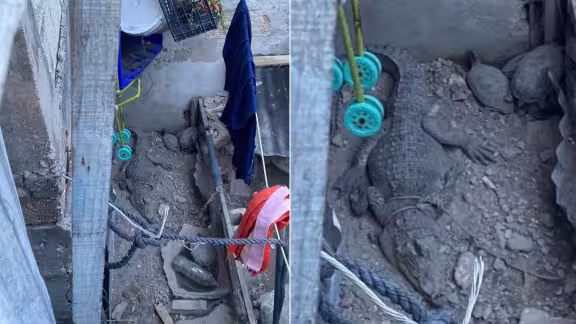 Cocodrilo amarrado en una vivienda: piden reportar fauna silvestre ilegal