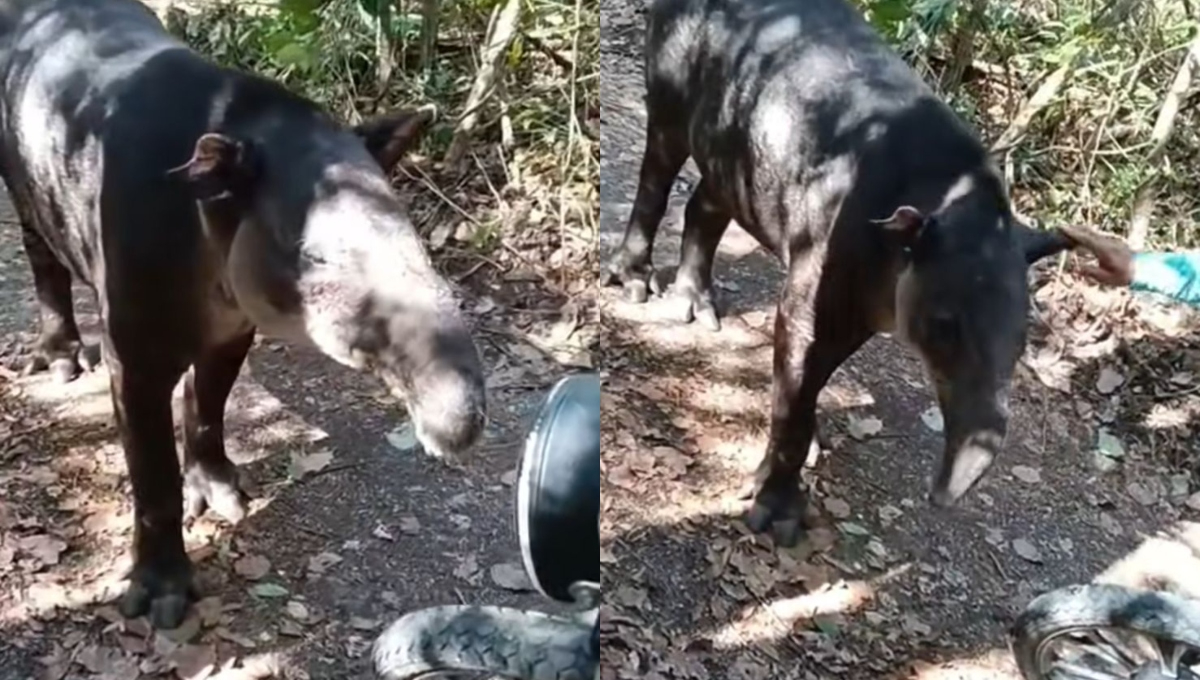 Un extraordinario momento fue registrado en video por Eloy López, brigadista comunitario de X-Canhá, localidad perteneciente al municipio de Hopelchén, Campeche. En la grabación se aprecia el momento en que un tapir (Tapirus bairdii), aparentemente herido, aparece en un camino rodeado de selva para acercarse al poblador.