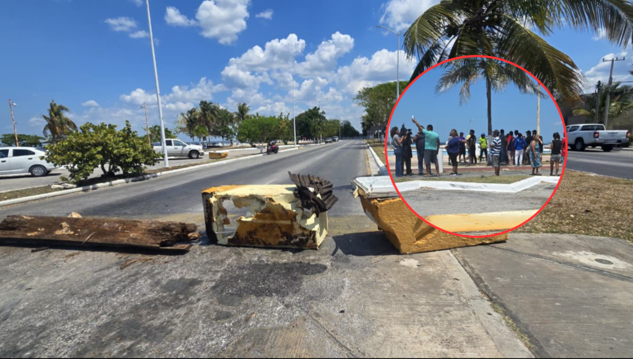 Pescadores del Camino Real cerraron la Avenida Pedro Sainz de Baranda como protesta tras el operativo federal realizado la madrugada del 25 de marzo por autoridades federales, donde se retiraron 20 techumbres instaladas sobre la zona marítima federal de la capital campechana.