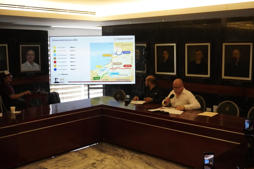 El titular de la Sedumop, Bernhard Rehn, también informó que están laborando en diferentes tramos de la Entidad, por lo que este año el proyecto de “Conservación rutinaria 2026” contempla la atención mayor a los mil 155 kilómetros, divididos entre siete zonas estatales: Carmen, Palizada, Candelaria, Escárcega, Calakmul, Champotón y Campeche.