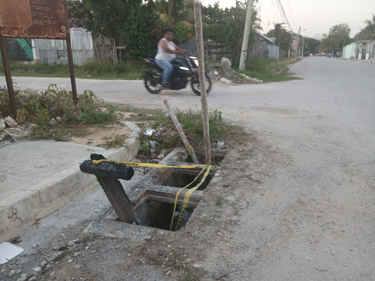 El registro del drenaje está en la esquina de dos calles y sobre la banqueta, lo que aumenta la posibilidad de un accidente con consecuencias fatales. Por ello, los colonos exigen que se coloquen nuevamente las tapas de metal, aseguradas con soldadura o tornillos para evitar nuevos robos.