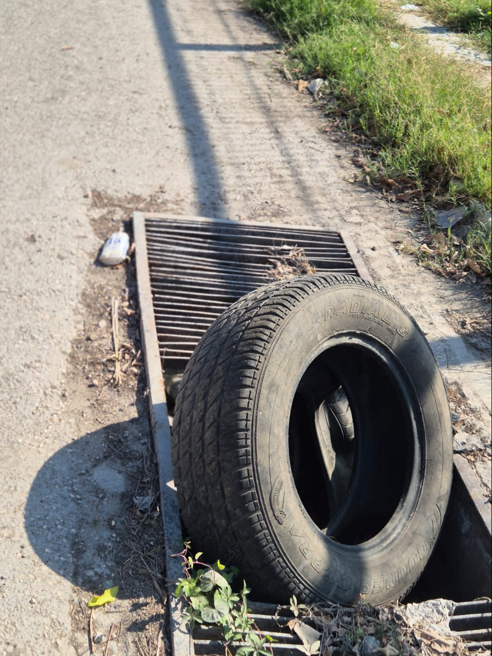Para evitar un accidente, moradores de la colonia Flamboyán, en Champotón, procedieron a colocar unos neumáticos encima de una rejilla del drenaje pluvial en mal estado. Cabe mencionar que este problema se origina sobre la calle 8, entre 9 y 11, de la colonia antes referida en esta ciudad cabecera.